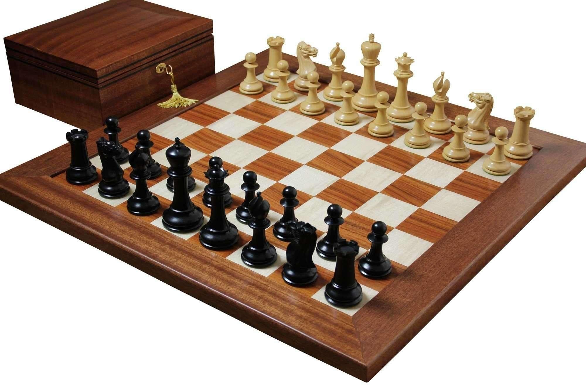 Шахматы классические в деревянной коробке 300х300 мм с замком; деревянные фигуры